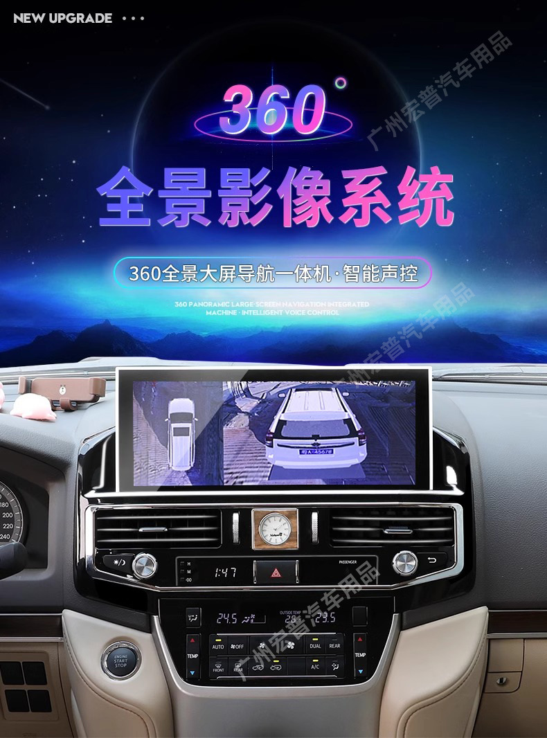12.1 Inch HD Touch Screen Multimedia Navigation System with 360 Degree Panoramic Birds Eye View Camera and Dash Cam for Toyota Land Cruiser