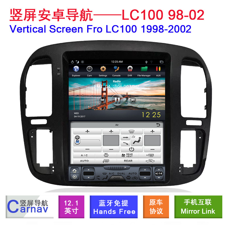 12.1-Inch Vertical Screen Android Navigation Multimedia Player for Toyota Land Cruiser LC100 1998
