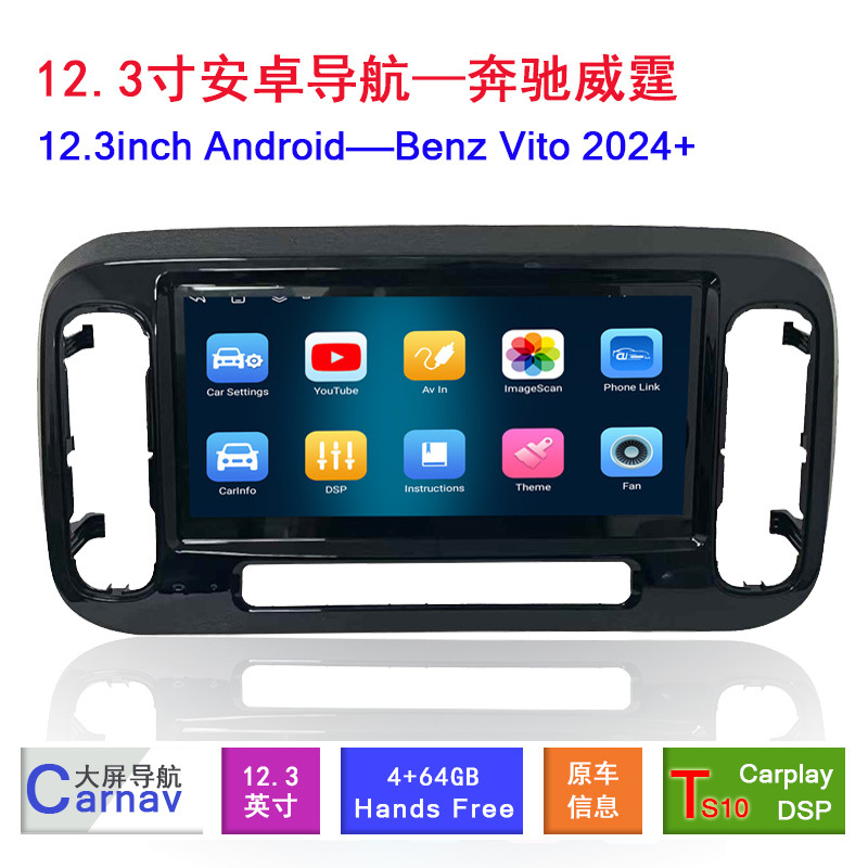 12.3-Inch Android Smart Multimedia Navigation Display with Wireless CarPlay for Mercedes-Benz Vito 2024