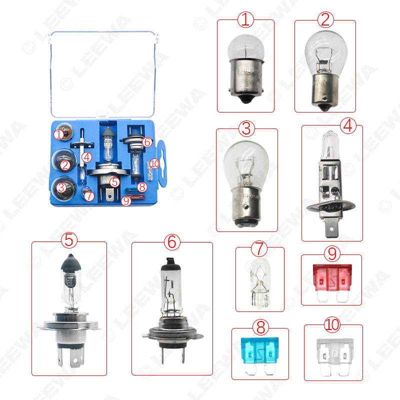 Tags: 12V auto lamps, automotive lighting kit, car light bulbs, emergency bulb set, H7 halogen bulb, halogen headlight kit, signal light replacement
