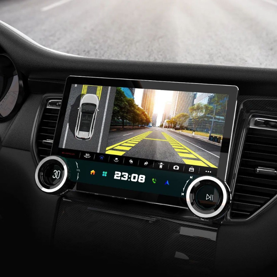 Upgrade your drive with our 13.3-inch 8-core Android car stereo. Features wireless CarPlay, 4G connectivity, and unique dual knobs for premium control and media.