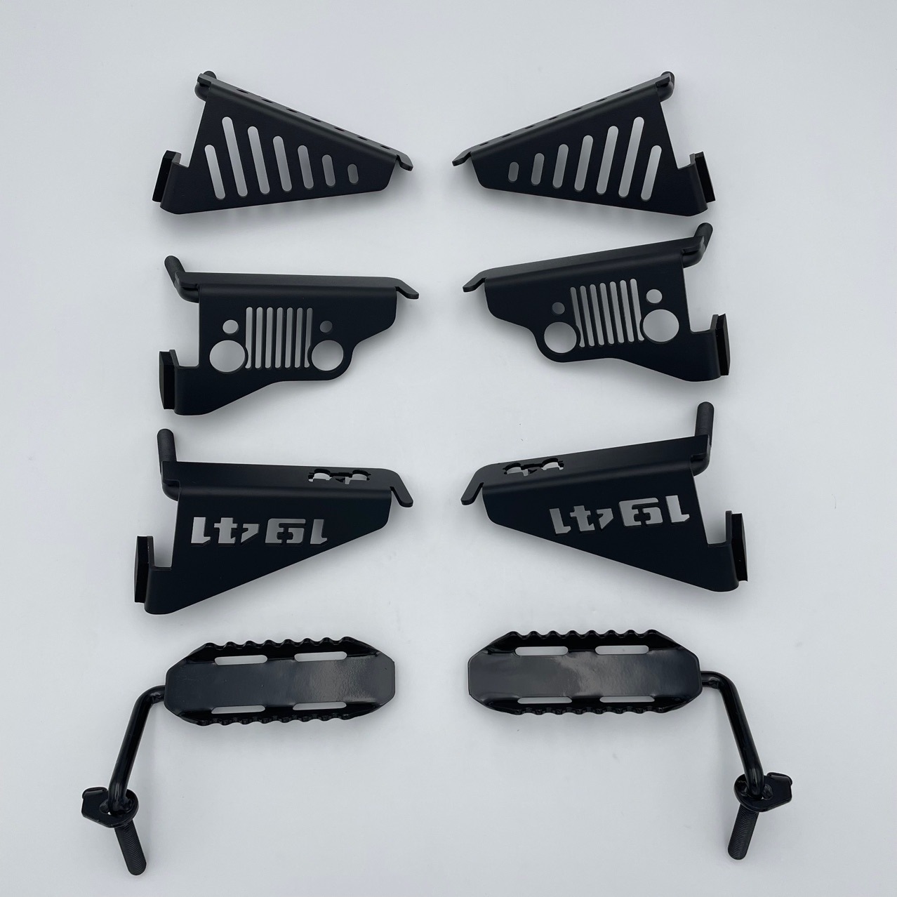 Enhance your Jeep’s utility with these 1941 Edition Door Hinge Foot Pedals. Durable steel build for easy roof access on Wrangler JK/JL models. Shop now.