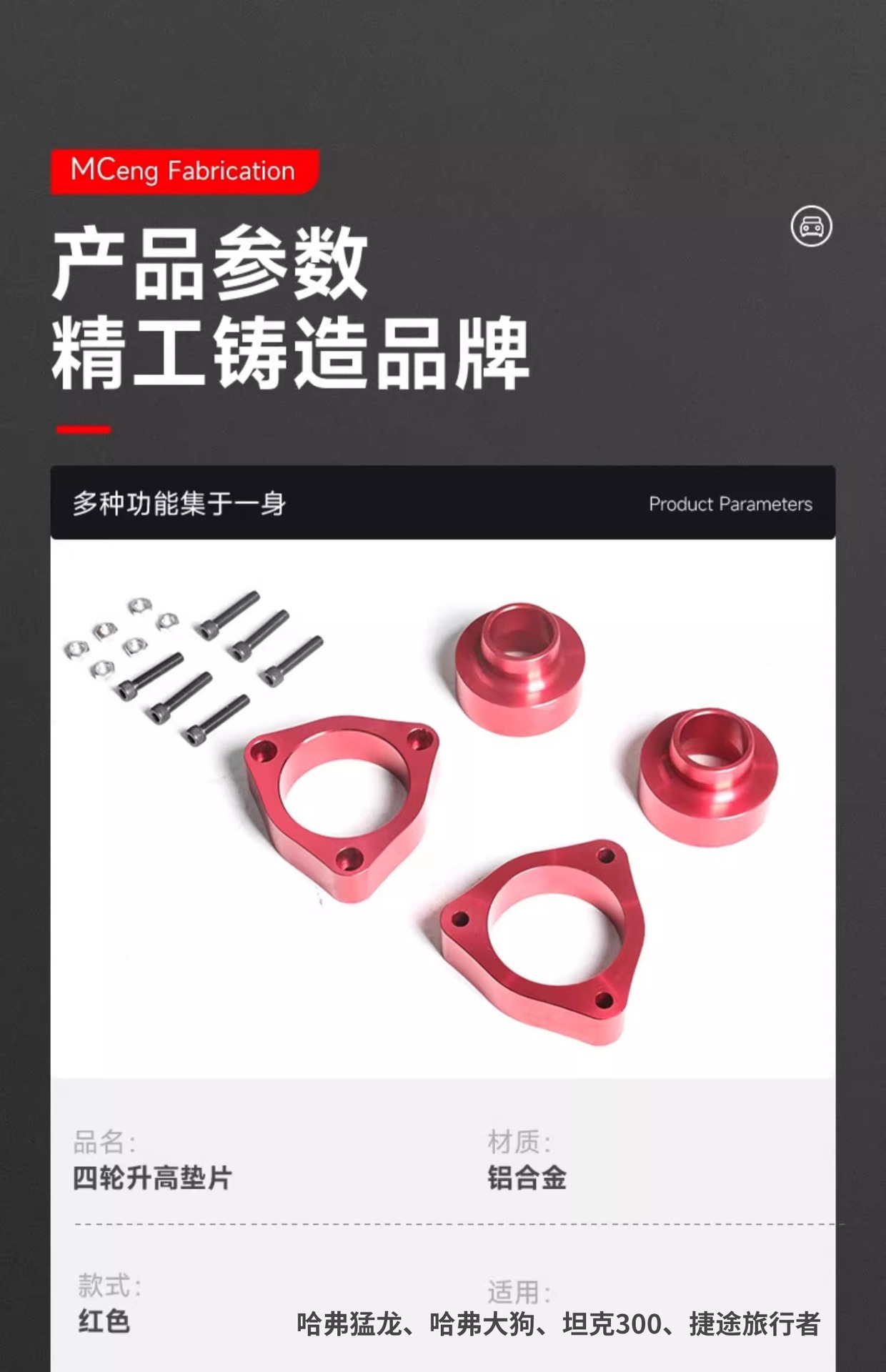 Be the first to review “2-Inch Front and Rear Suspension Lift Kit Spacers for Haval Raptor, Big Dog, Tank 300, and Jetour Traveler” Cancel reply