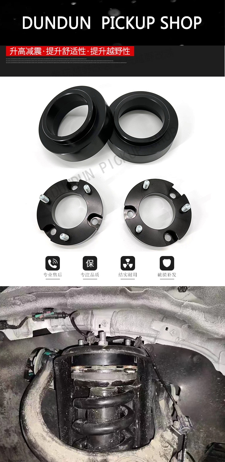Upgrade your vehicle with this 2-inch lift kit featuring front and rear shock absorber spacers. Enhance ground clearance and off-road performance with ease.