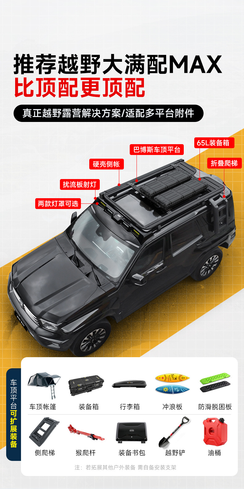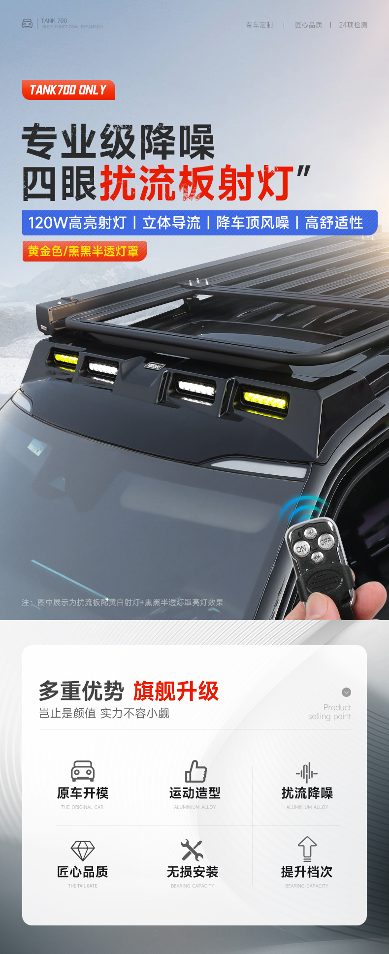 2024 tank 700hi4t roof spotlight modified roof rack frame aluminum alloy folding ladder side account