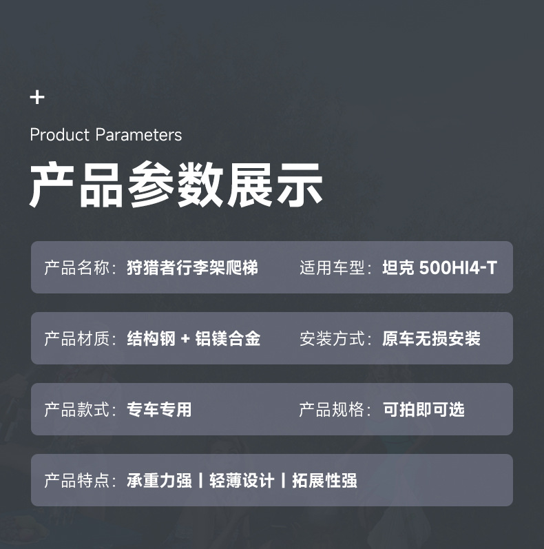 Be the first to review “22-26 Tank 500 Hi4Z/T Modified Hunter-Style Luggage Rack, American Car Mk Roof Platform Side Ladder, Special for Use” Cancel reply