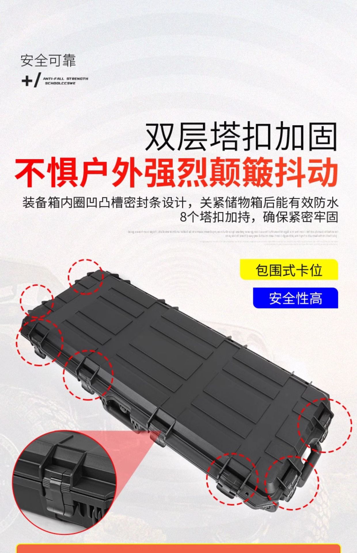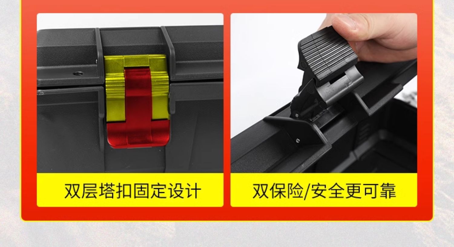 - Dual-latched locking mechanism ensures the cargo box remains securely closed even on vibrating unpaved terrains.