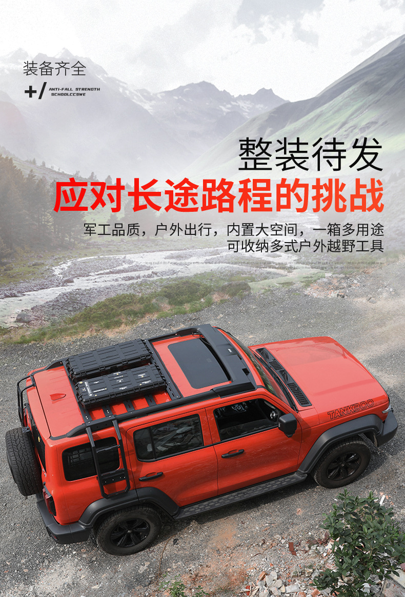 - Integrated roof rack mounting system allows for secure attachment to existing crossbars on Tank series models.