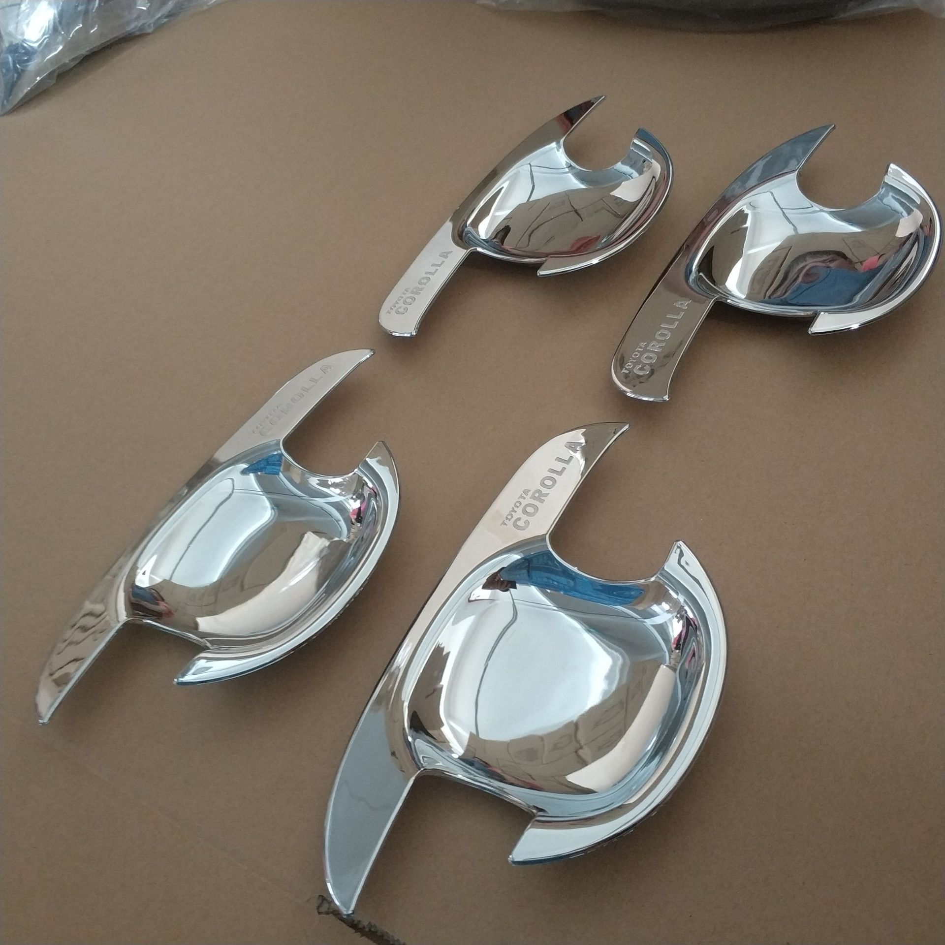 Tags: car door decoration, chrome door accessories, Corolla car trim, door handle bowl cover, exterior door garnish, scratch protector