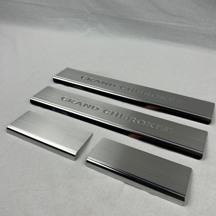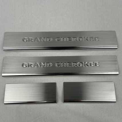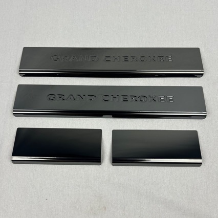 Protect your 2011-2021 Jeep Grand Cherokee with these premium stainless steel door sill plates. Durable black crystal finish. Easy adhesive install for 4 doors.