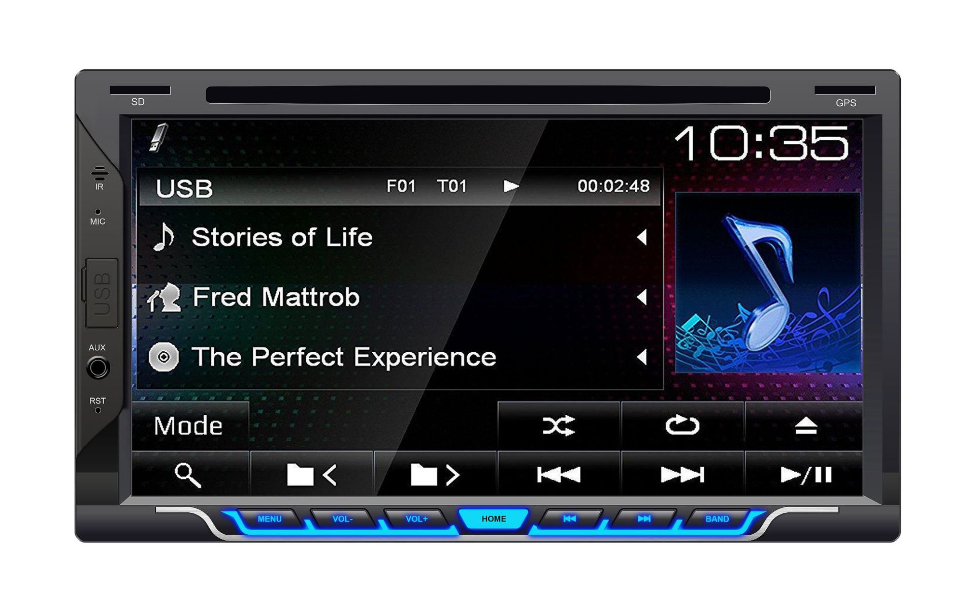 Upgrade your driving experience with this 6.95 inch Double Din Car DVD Player featuring high-precision GPS navigation, Bluetooth connectivity, and AM/FM radio.