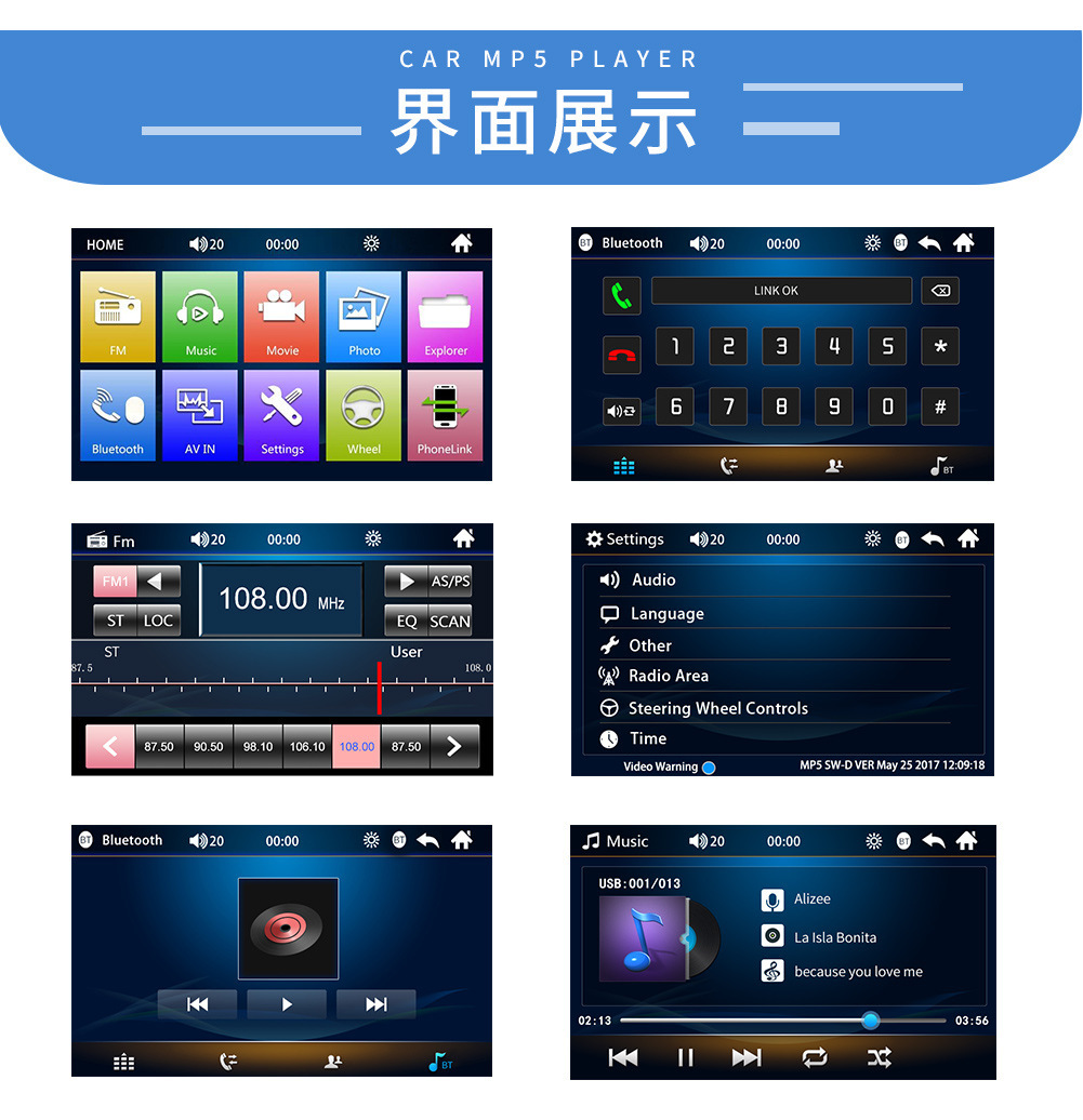 7 Inch Double Din Universal MP5 Player with Bluetooth Hands-Free GPS Navigation Mirror Link and USB Port for Toyota