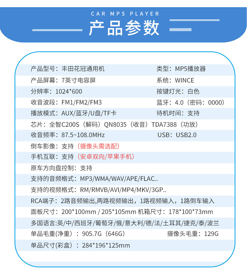 Upgrade your Toyota with this Double Din MP5 player featuring GPS navigation, Bluetooth hands-free, and Mirror Link. Enjoy HD touch control and USB playback.