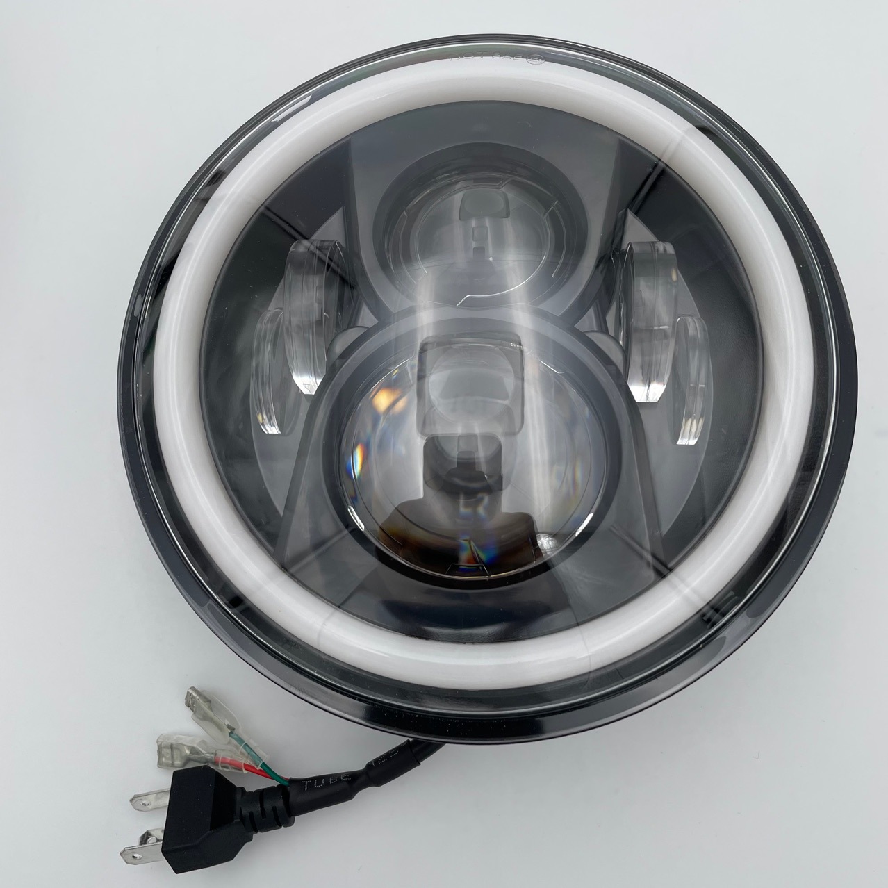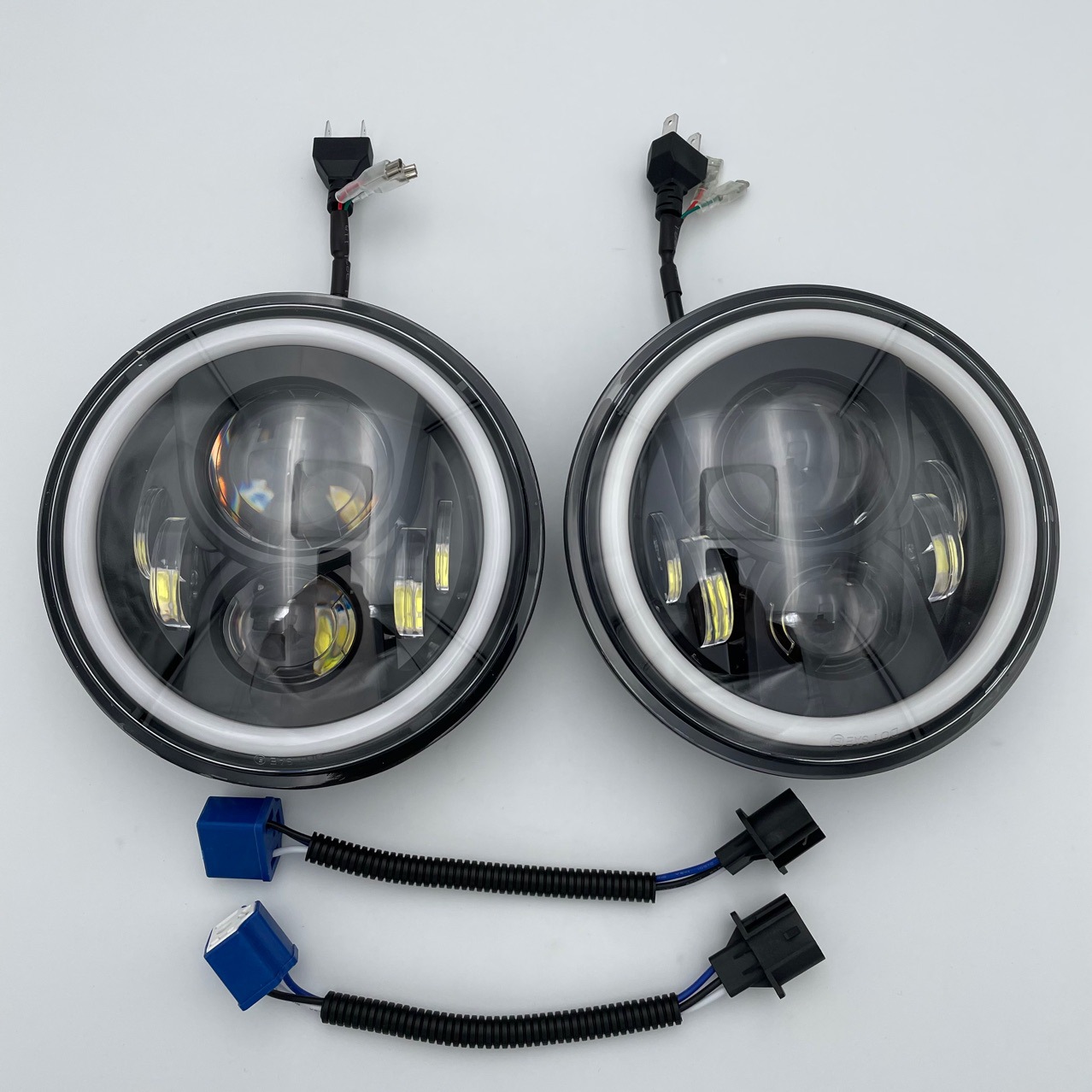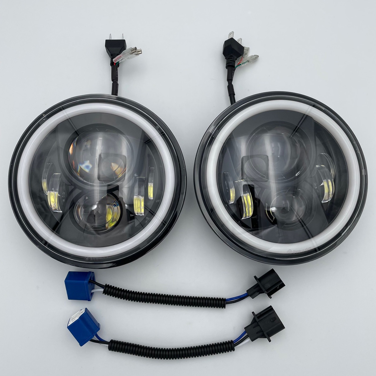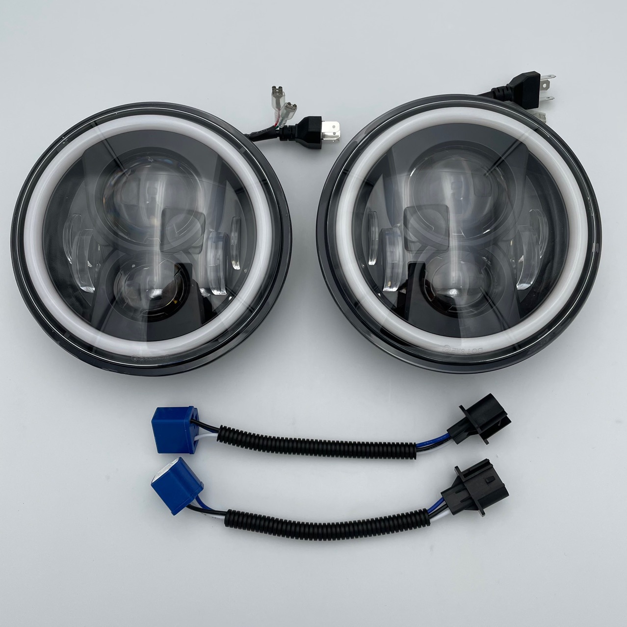 A: These headlights are designed to meet standard 7-inch round specifications with a clear horizontal cutoff line to ensure safety and visibility without blinding other drivers.