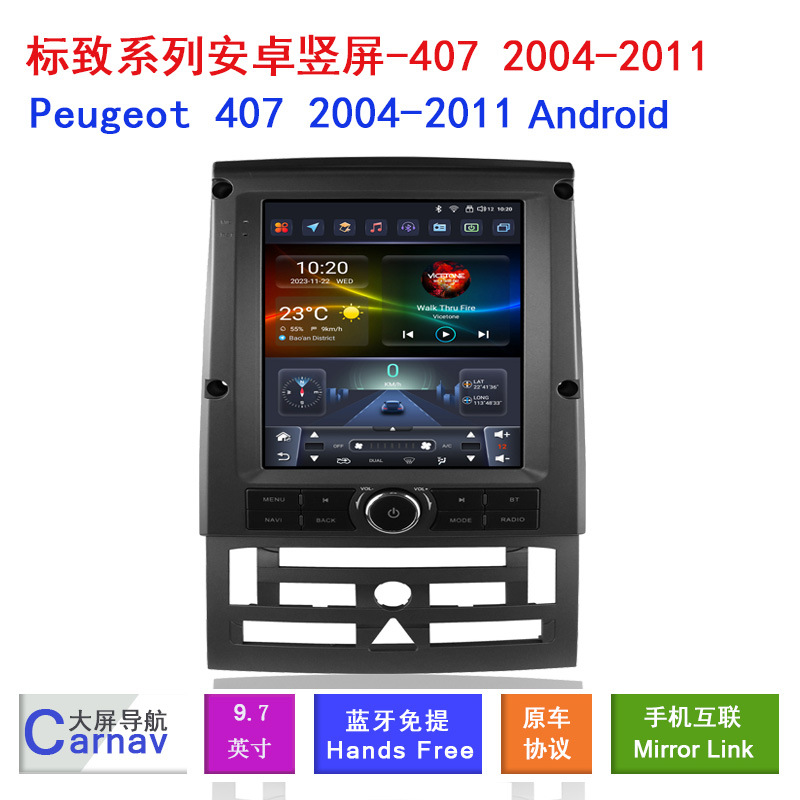 Upgrade your Peugeot 407 2004-2011 with this 9.7-inch multimedia MP5 player featuring GPS navigation, Bluetooth connectivity, and rear-view camera support.