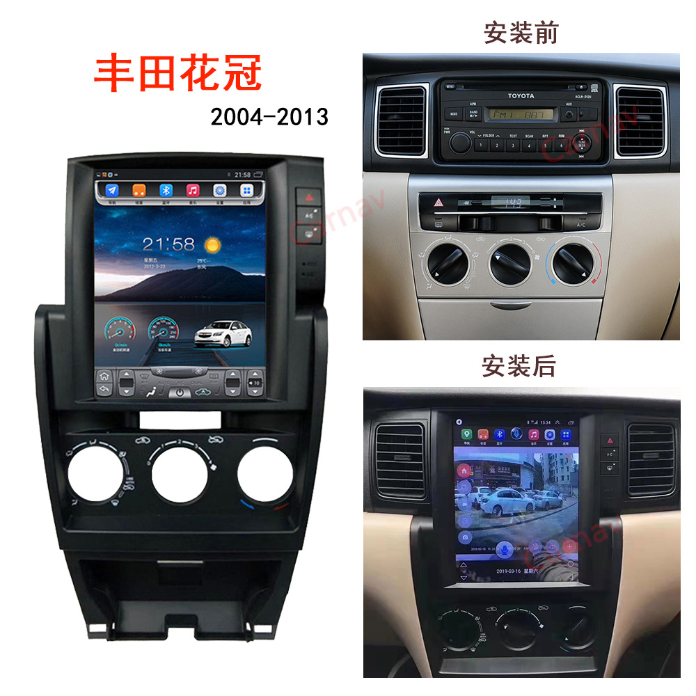 Upgrade your Toyota Corolla 2004-2013 with this 9.7-inch vertical Android GPS navigation system. Features high-res touch display, smart connectivity, and easy install.