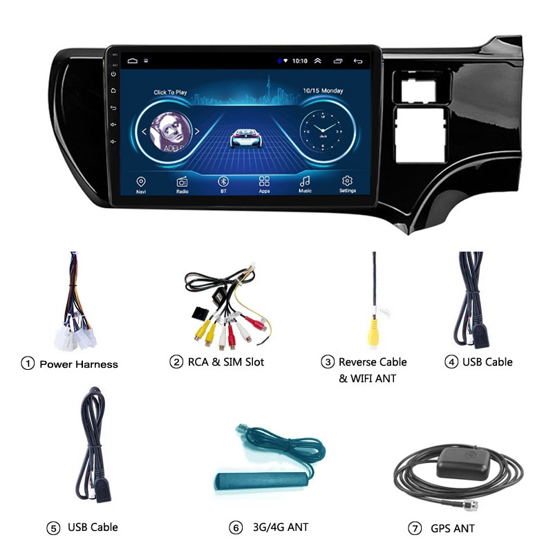 Upgrade your driving experience with this Android GPS navigation system for Toyota Aqua 2012-2014. Features a high-res touchscreen, Bluetooth, and smart apps.