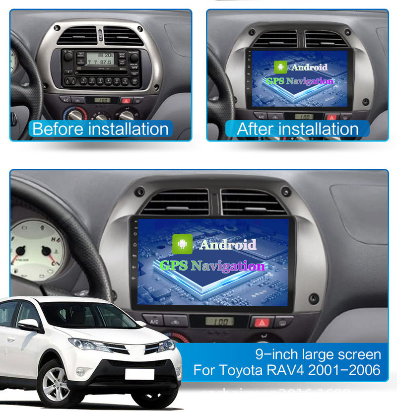 9 Inch HD Android Car Stereo with GPS Navigation and Rear View Camera Support for Toyota RAV4 2001-2006