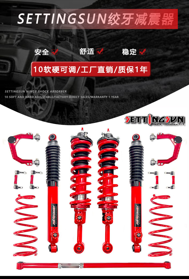 | Specifications | A pair of front shock absorbers, Pair of rear shock absorbers, A pair of upper arms, A set of rear heightening pads, Adjustable 10 piece set |