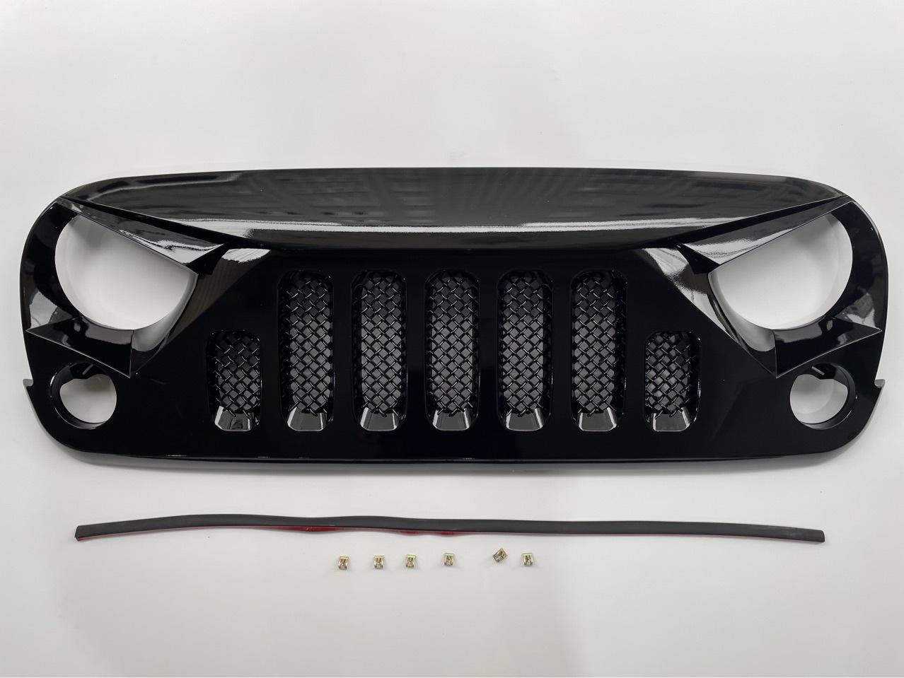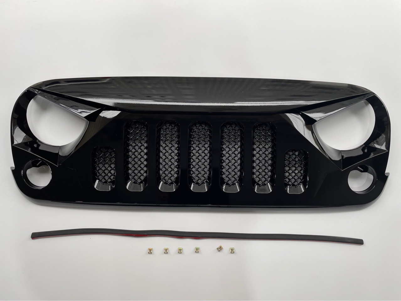 Upgrade your 2007-2017 Jeep Wrangler JK with this high-quality Gloss Black Angry Bird Front Grille. Durable ABS construction, easy installation, and aggressive off-road style.