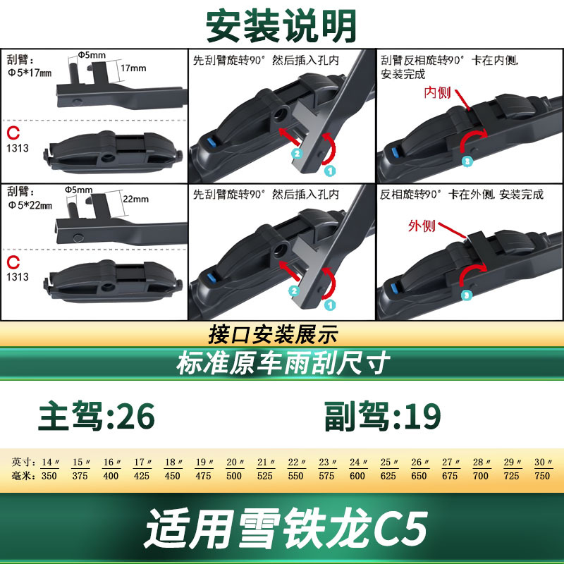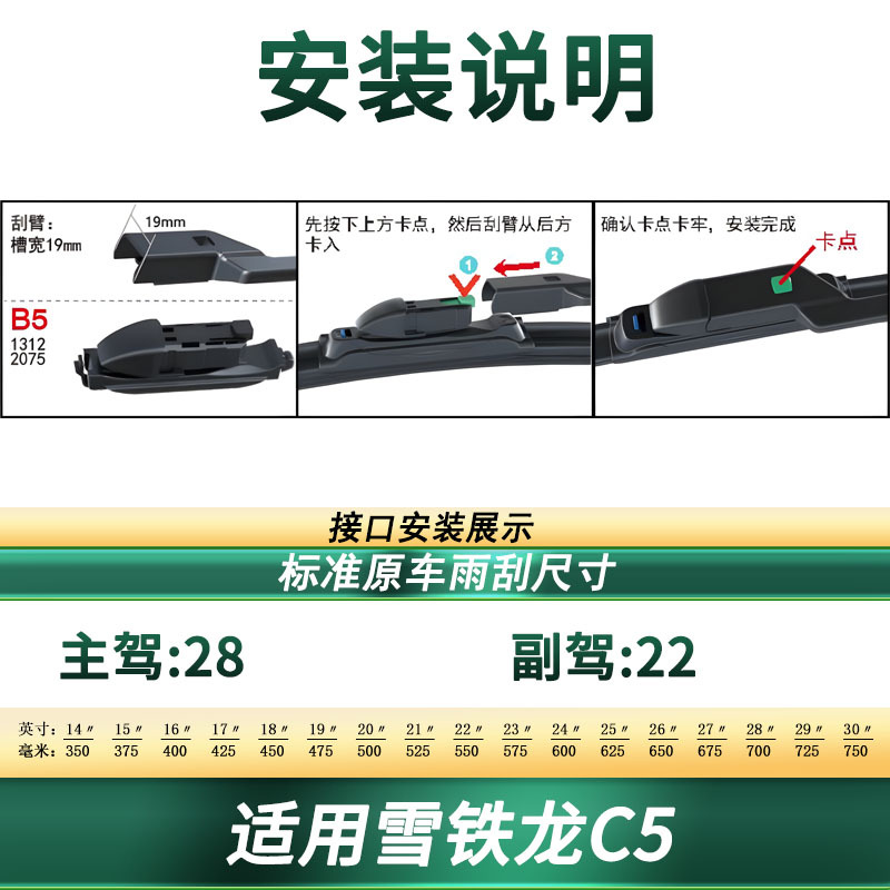 Upgrade your Citroen C5 with these premium frameless windshield wiper blades. Features silent natural rubber technology for a streak-free and quiet performance.