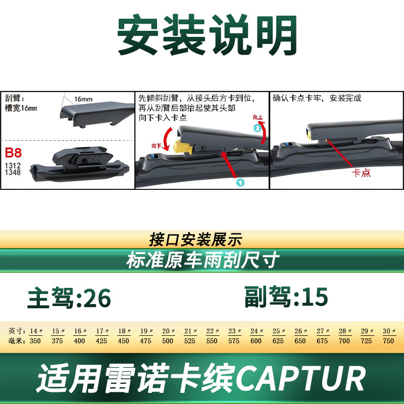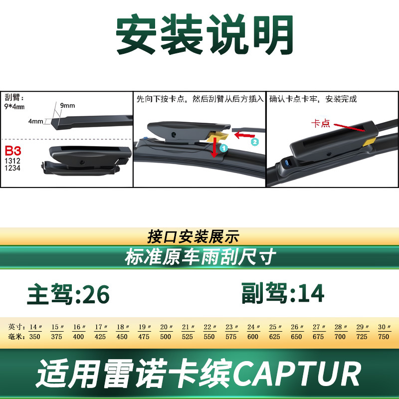 - Precise fitment designed specifically for Renault CAPTUR ensuring seamless integration with the original wiper arm.