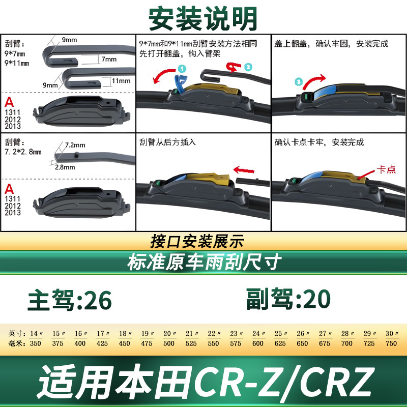 Upgrade your Honda CR-Z with our premium frameless windshield wiper blades. Features noise-reduction rubber and aerodynamic design for streak-free all-weather visibility.