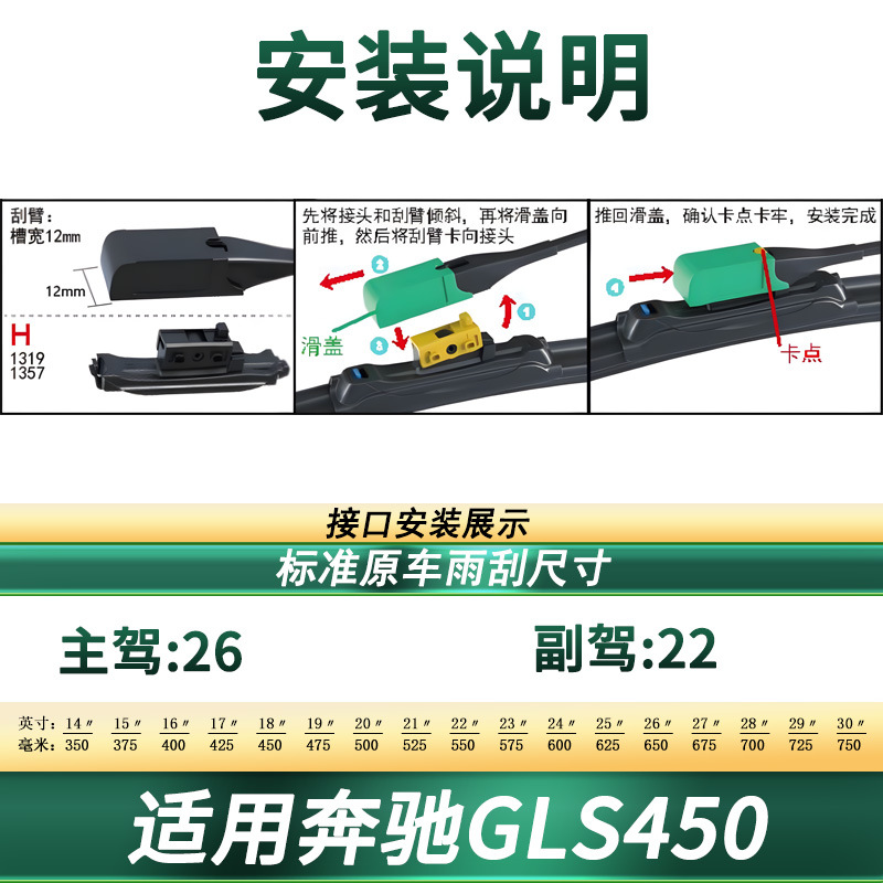 Upgrade your Mercedes-Benz GLS450 with high-performance frameless windshield wiper blades. Featuring silent rubber technology for streak-free visibility in any weather.