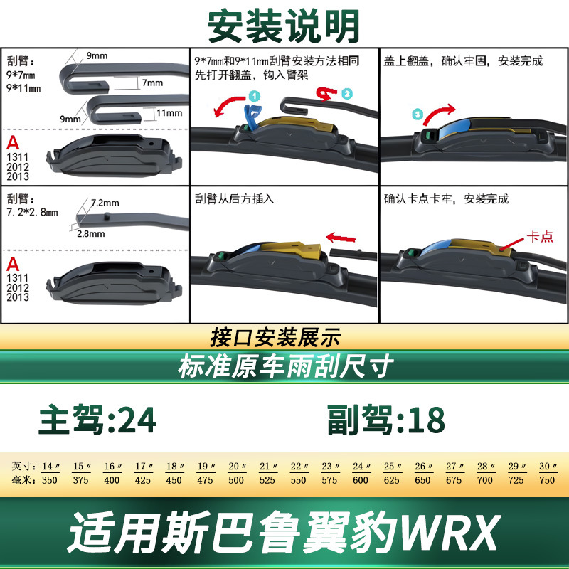 Tags: automotive exterior parts, beam wiper blades, car window brushes, silicone rubber blades, subaru rain guards, windshield wipers, wiper refills