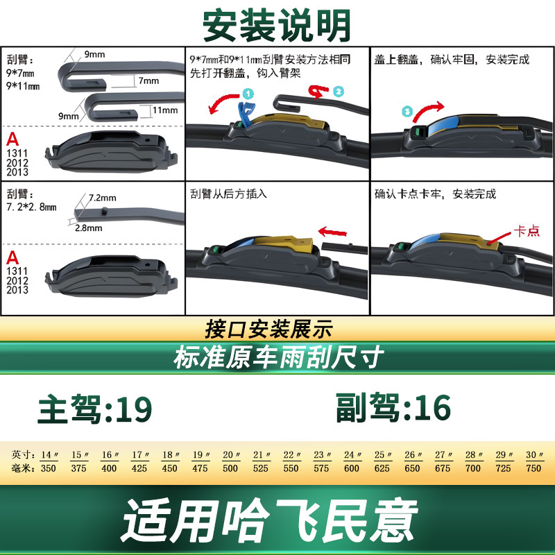 Upgrade your vehicle with silent frameless wiper blades designed for Hafei Minyi. High-quality graphite coated rubber ensures streak-free visibility and durability.