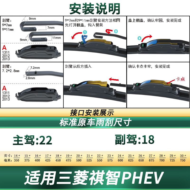 All-Weather Frameless Windshield Wiper Blades for Mitsubishi Qizhi PHEV Multi-Function Silent Rubber Strips