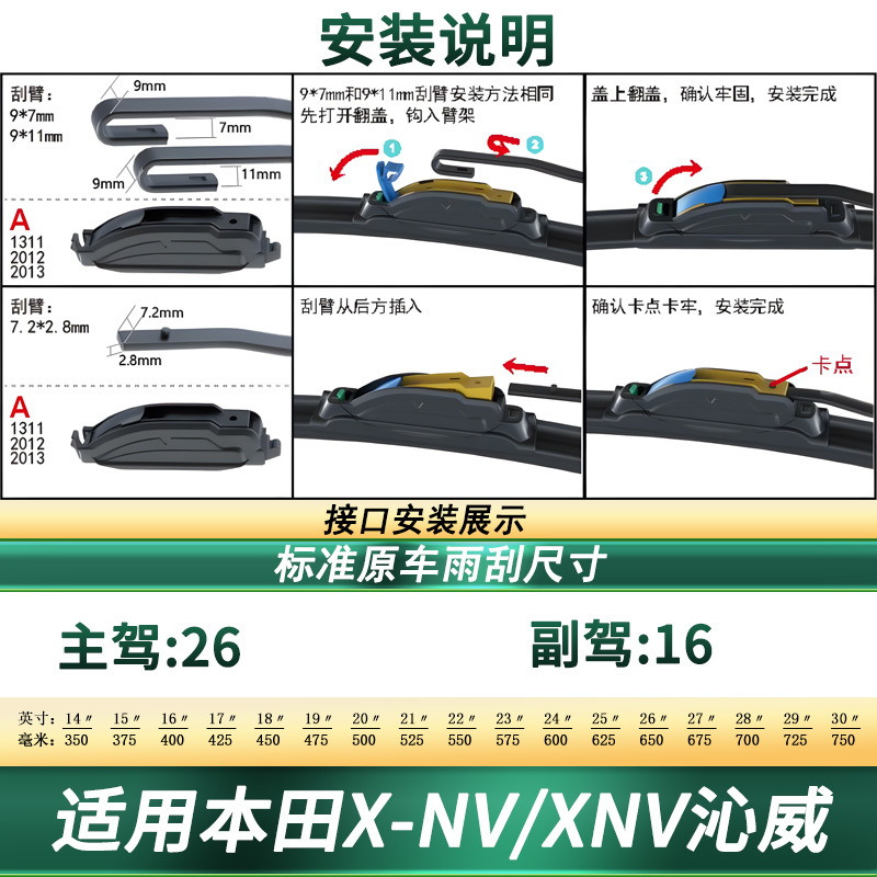 - Precise fit design specifically engineered for Honda X-NV series windshield curvature for optimal wiping performance.