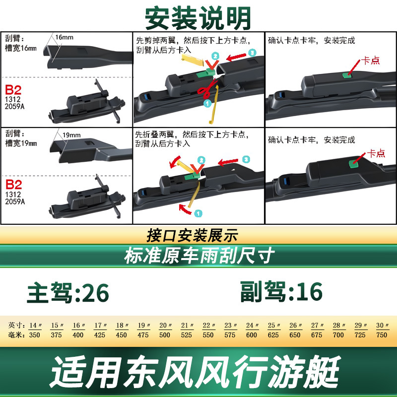 All-Weather Frameless Windshield Wiper Blades with Silent Rubber Strip for Dongfeng Forthing Yacht