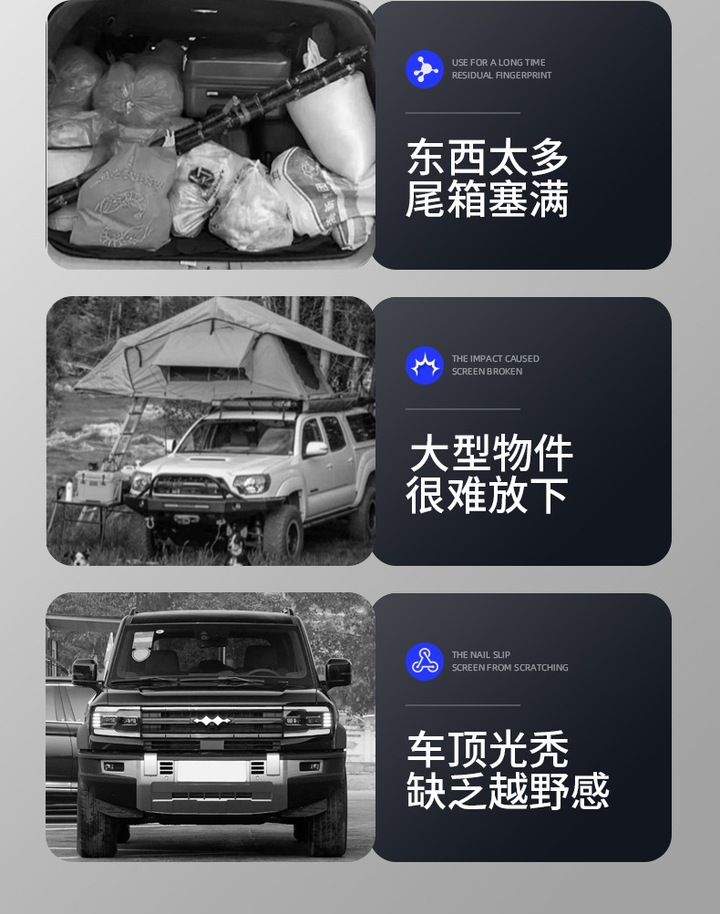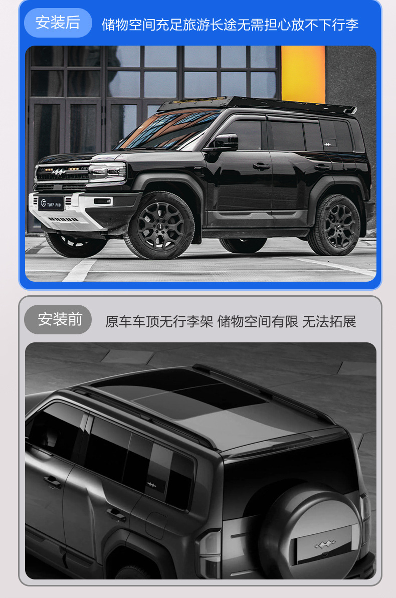- Versatile roof platform design provides ample space for luggage, outdoor camping gear, and essential equipment.