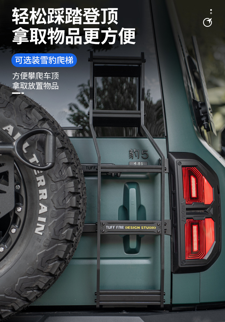 Aluminium Alloy Roof Platform Rack with Side Mounting Plate and Rear Ladder for Fang Cheng Bao 5 Off-Road Modification