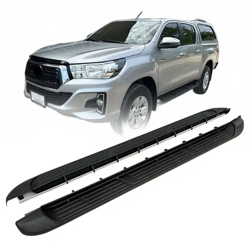 Upgrade your Toyota Hilux Revo or Vigo with durable aluminum side step running boards. Easy bolt-on installation, non-slip surface, and robust chassis protection.