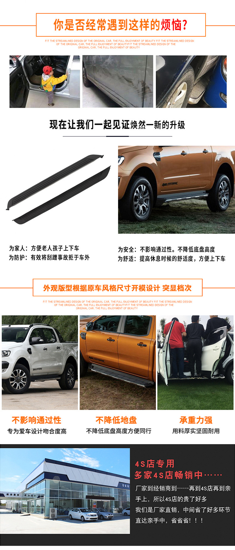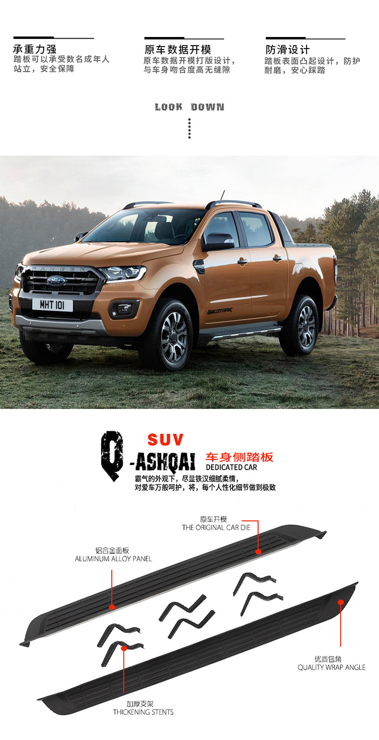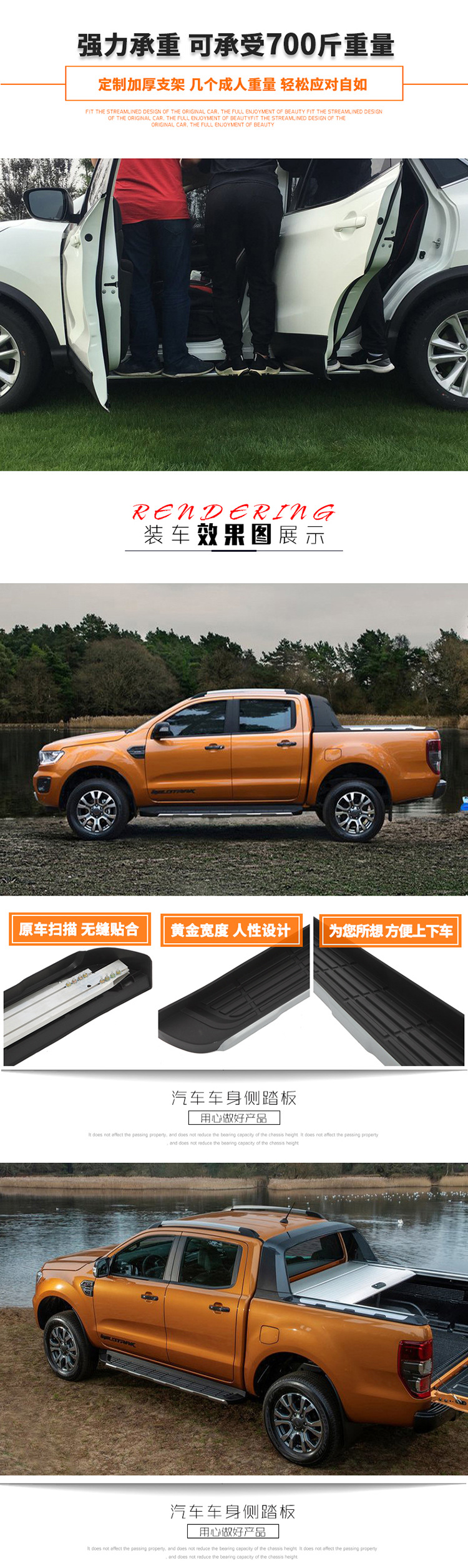 - Custom fit side steps designed specifically for JMC Baodian and Yuhu series pickups to ensure integrated vehicle styling.