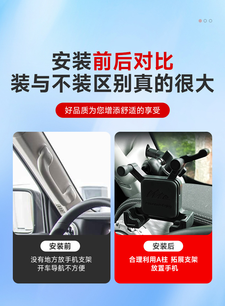 Tags: A-pillar mount, aluminum phone bracket, car phone holder, dashboard phone stand, off-road accessories, vehicle communication mount