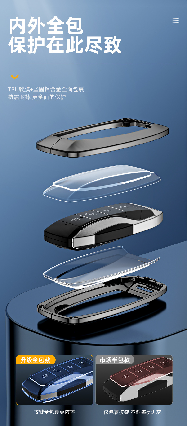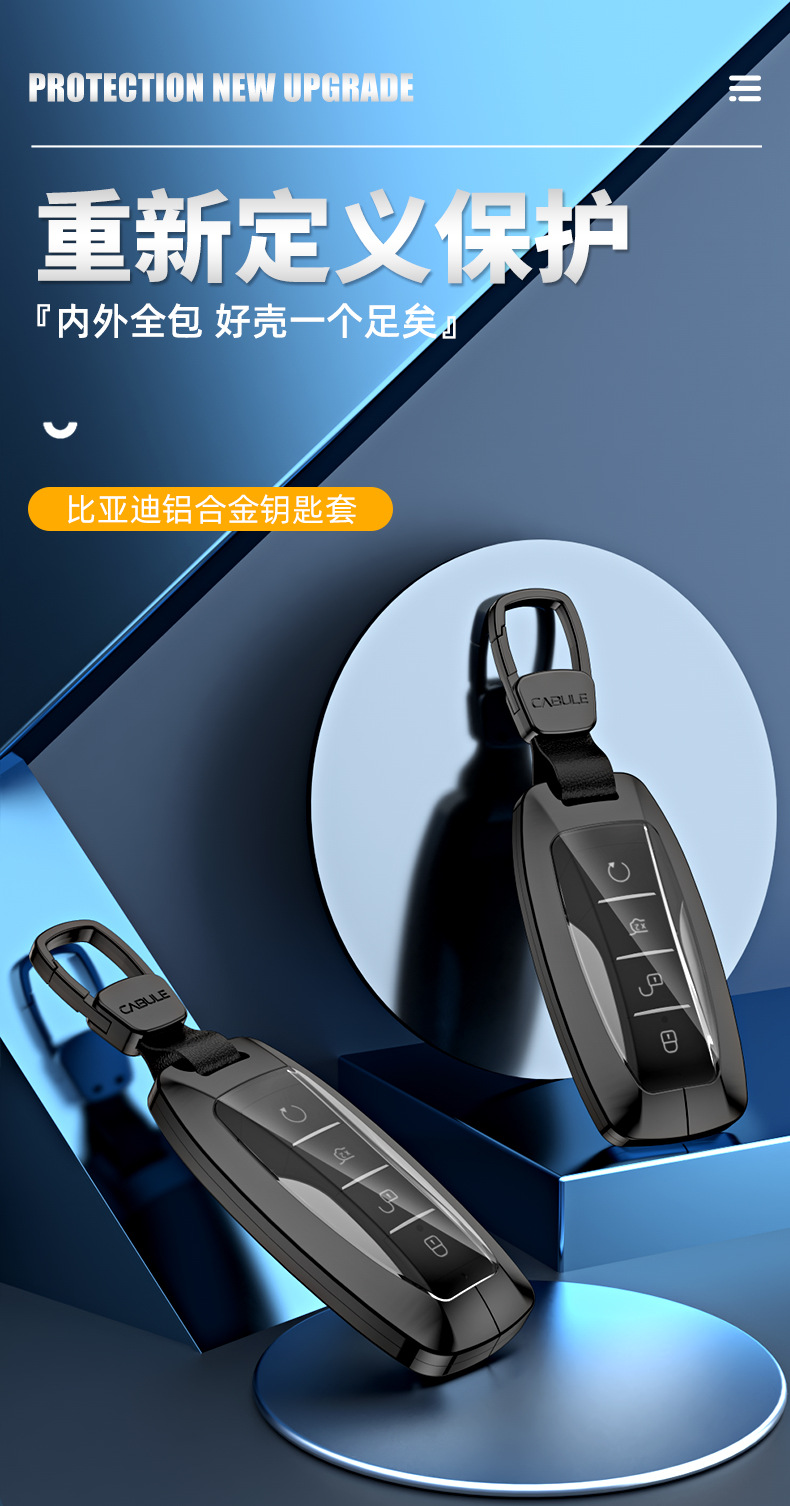 Tags: aluminum key fob cover, automotive interior protector, BYD key protector, car key case, key fob accessory, metallic key housing, remote key shell