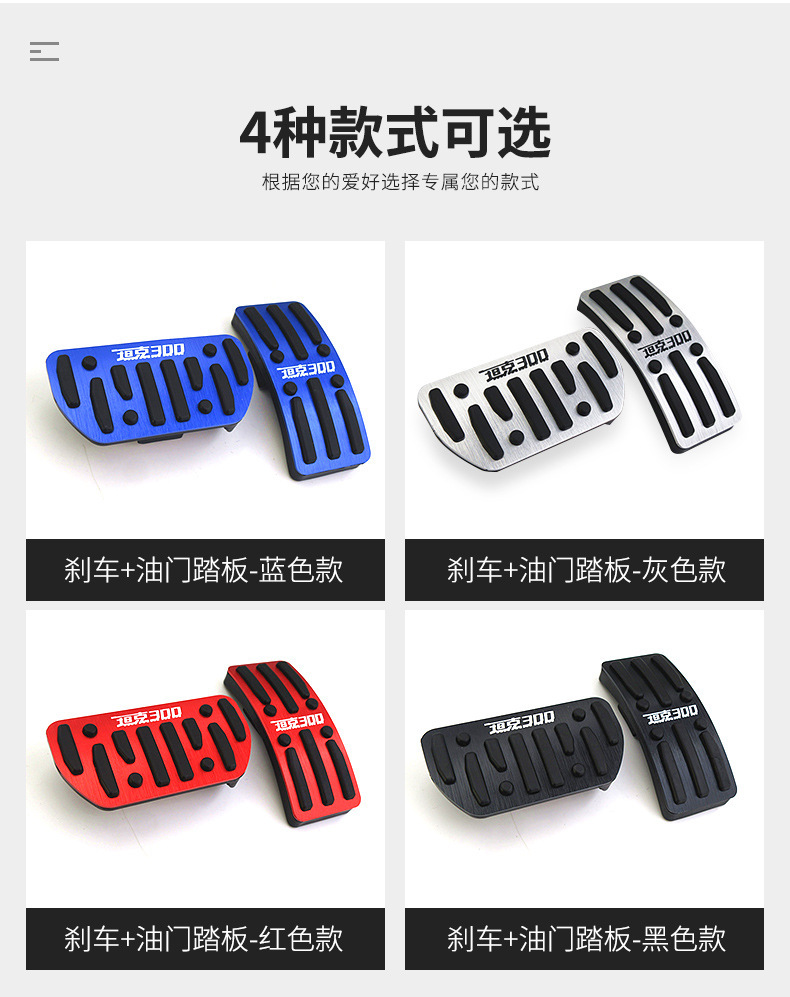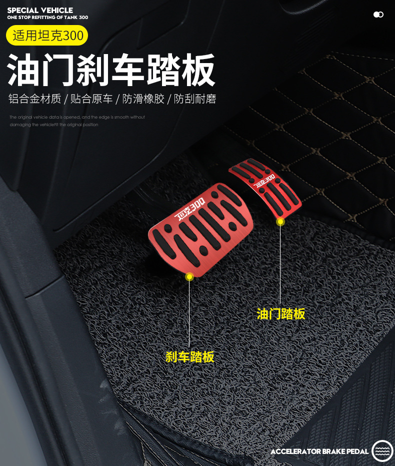 Tags: aluminum alloy pedals, anti-slip foot pads, brake foot rest, car pedal kit, gas pedal cover, interior car accessories, tank 300 parts