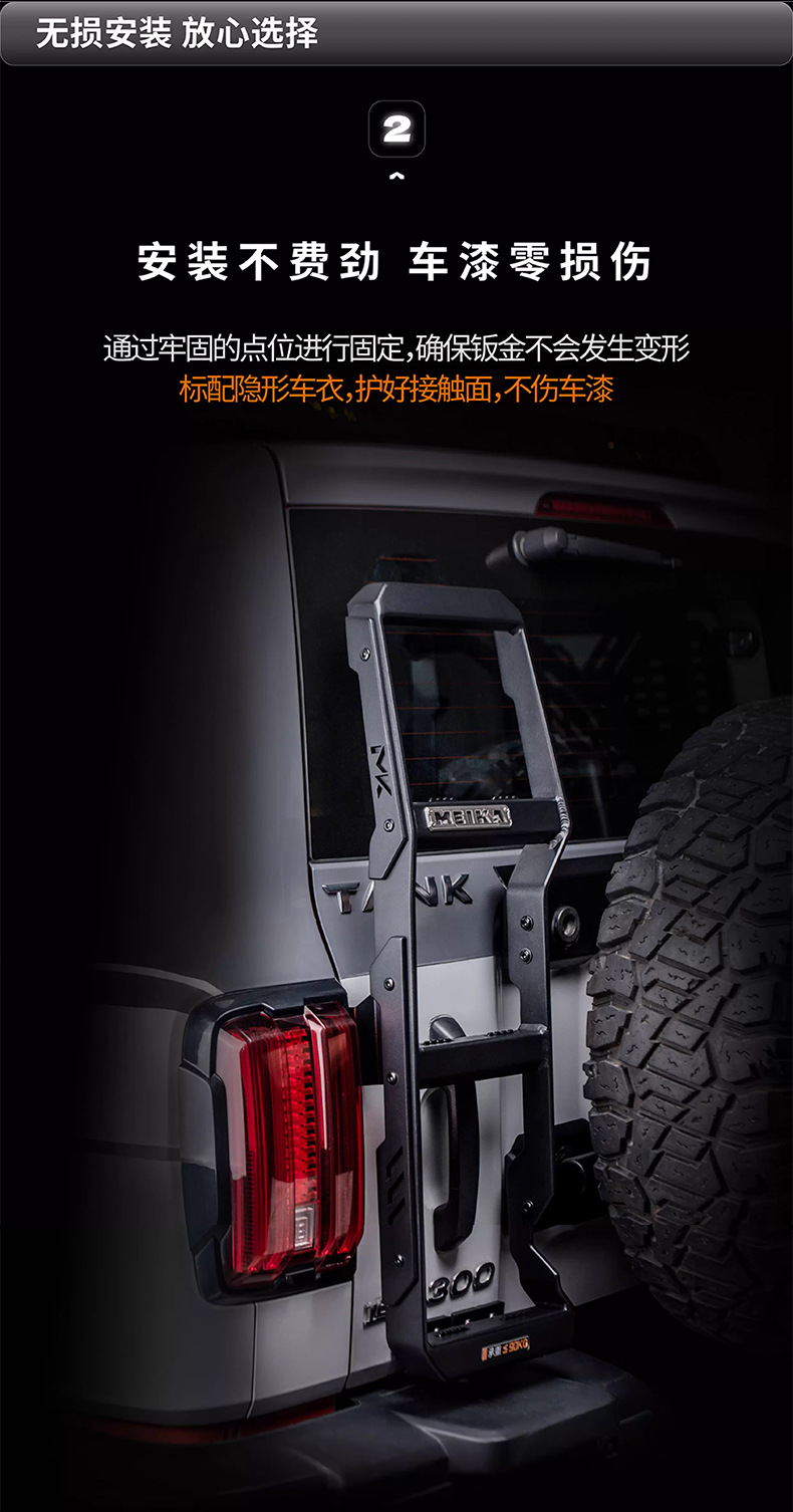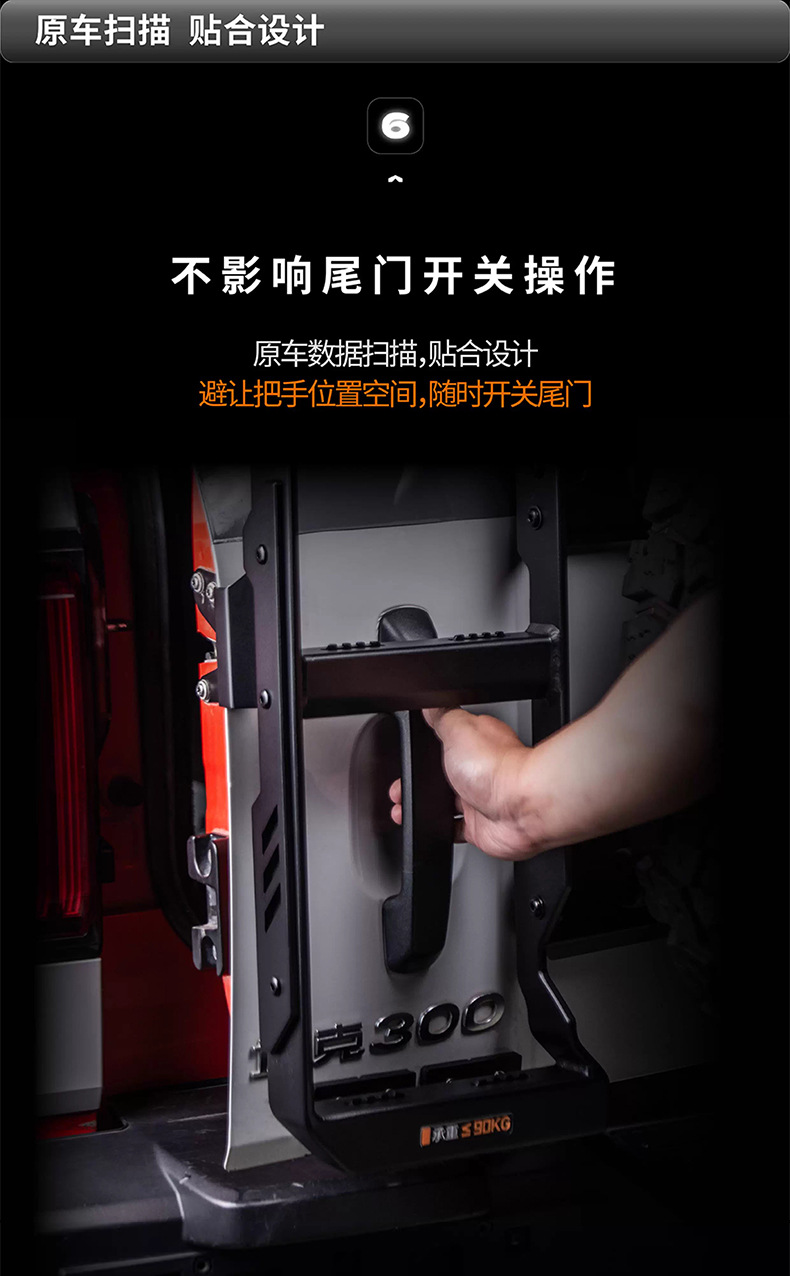 Aluminum Alloy Rear Tailgate Climbing Ladder for Tank 300 Off-Road Vehicle Roof Rack Access