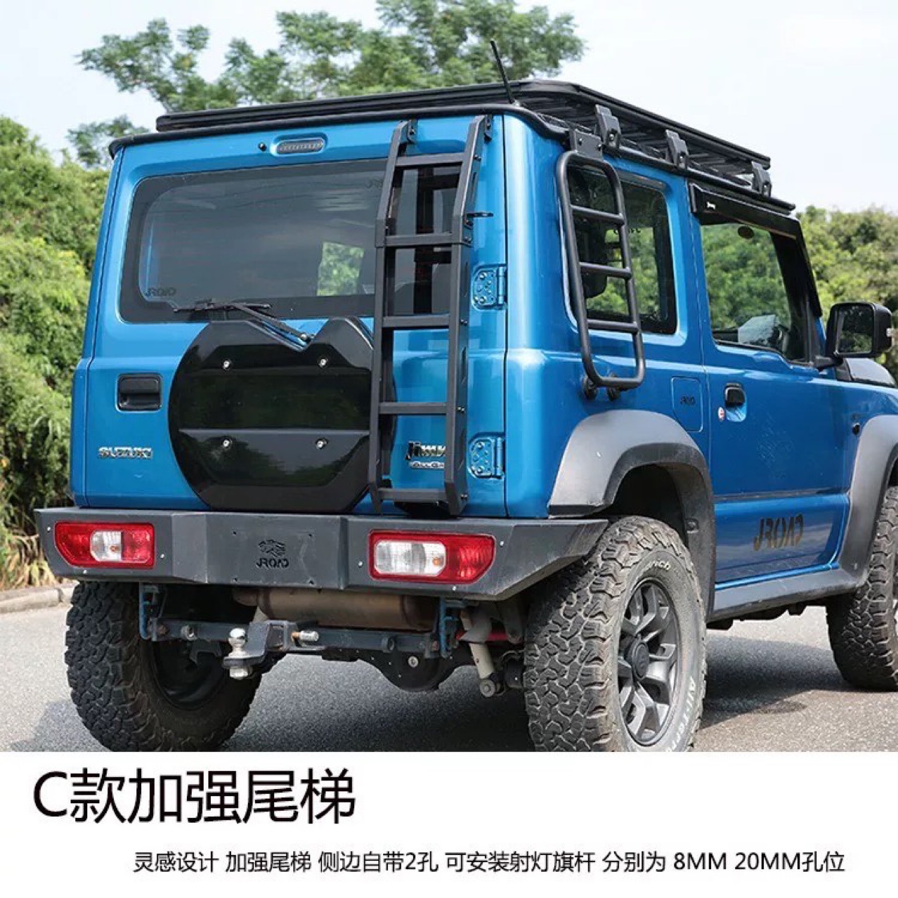 - Rugged Off-Road Aesthetic: The Type-C sleek, industrial design adds a professional off-road look to your Jimny while maintaining clearance for the rear spare tire and door handle operation.