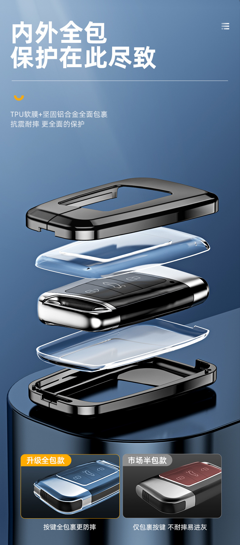 Upgrade your VW key fob with this premium aluminum alloy cover. Provides durable protection, anti-lost keychain, and signal-friendly design for Magotan and more.