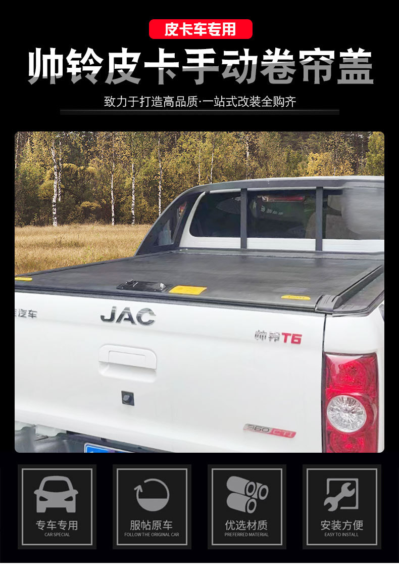 Upgrade your JAC Hunter T6 T8 T9 with this durable aluminum alloy retractable roll-up tonneau cover. Secure, weatherproof, and sleek protection for your cargo.