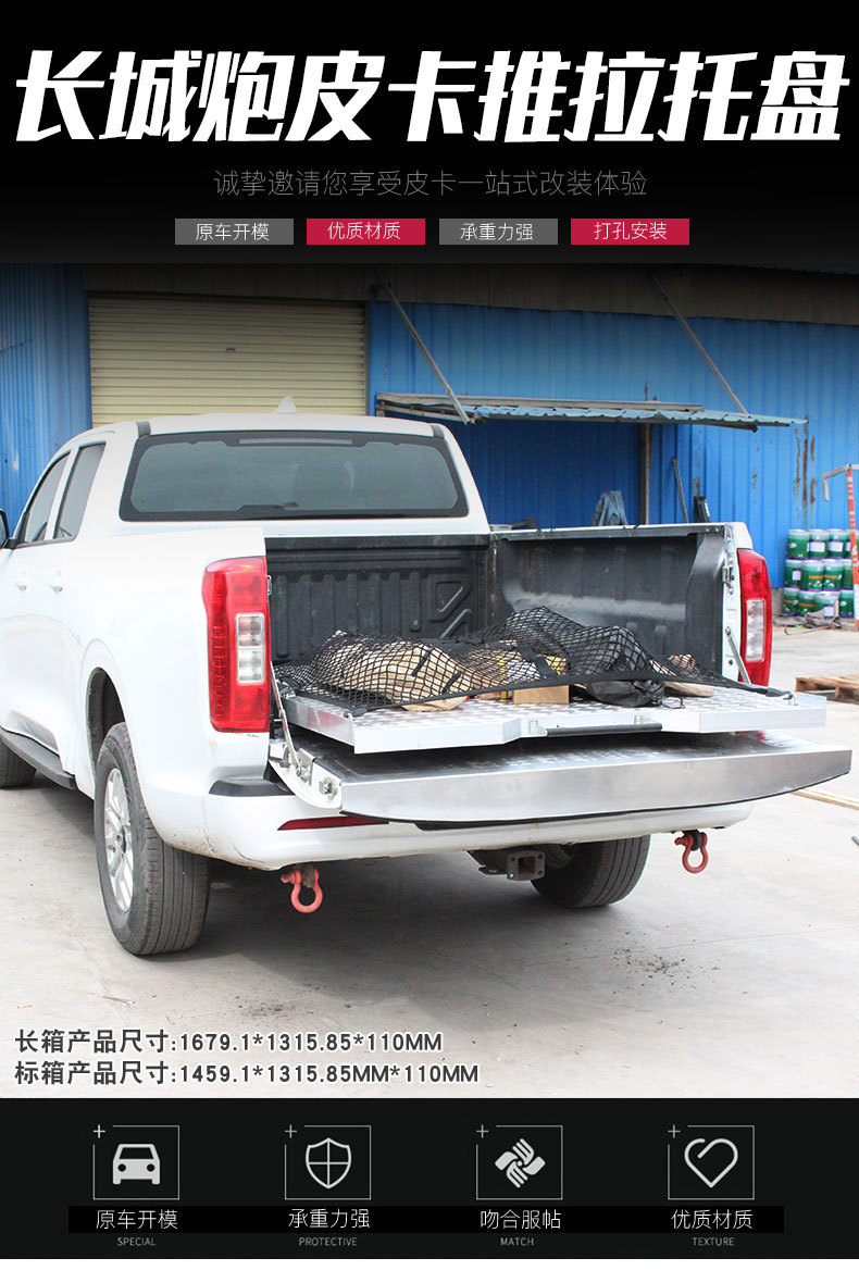 Enhance your pickup utility with our Aluminum Alloy Sliding Truck Bed Tray. Durable, retractable design for easy cargo access. Fits GWM Poer series perfectly.