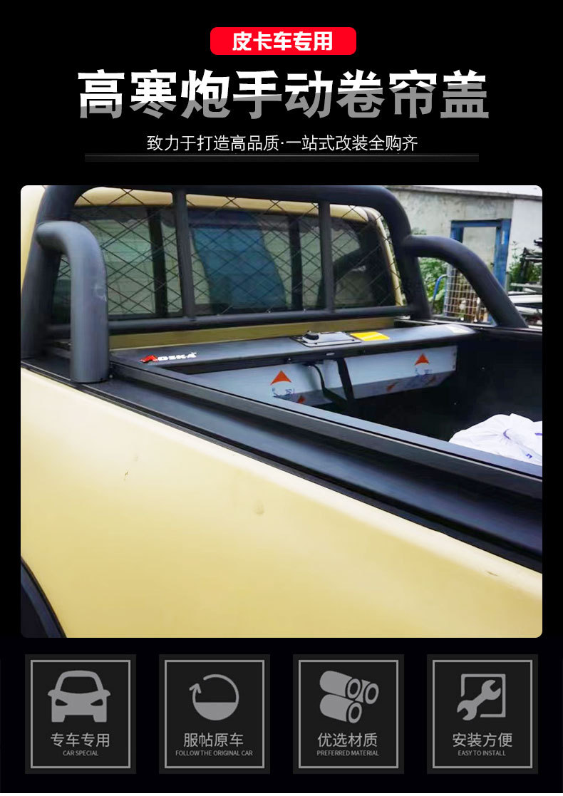 - Retractable roller shutter design provides secure and convenient access to the truck bed while protecting cargo from weather elements.