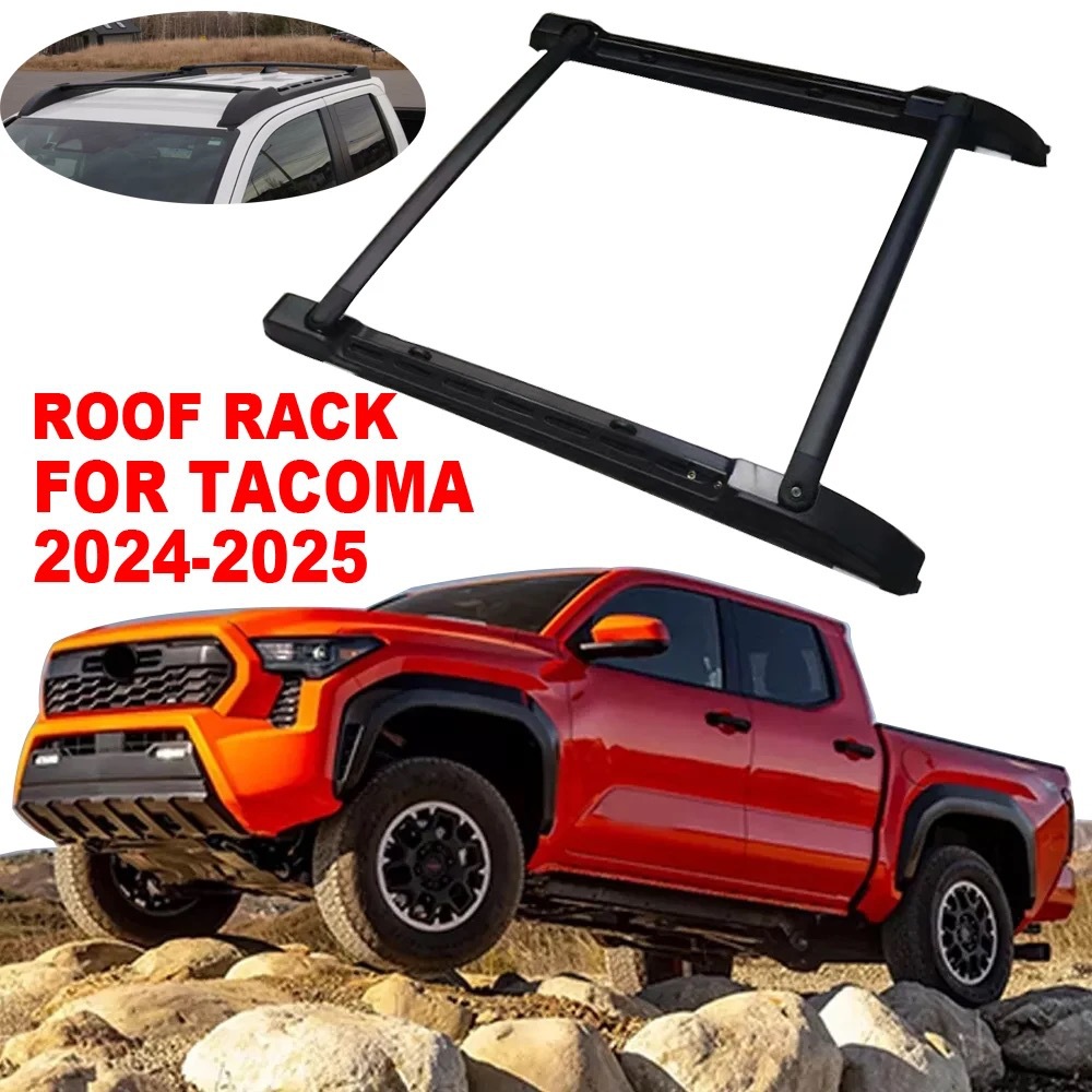 Upgrade your 2024 Tacoma with these durable no-drill aluminum alloy roof rack brackets. Perfect for heavy-duty cargo hauling and easy bolt-on installation.
