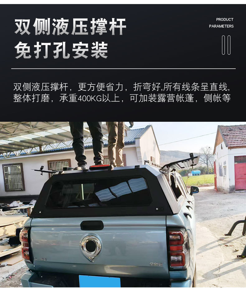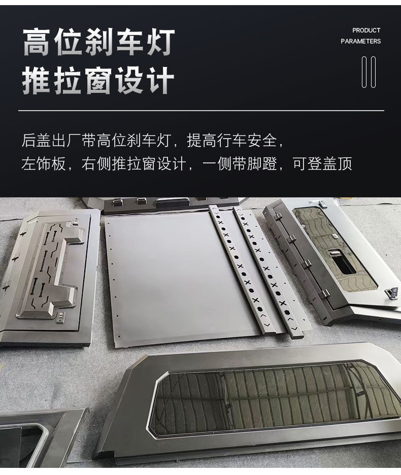 - Versatile Access: Features a split three-door opening design allowing convenient access to the truck bed from multiple angles.