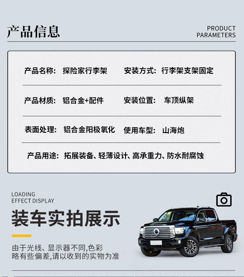 Aluminum Roof Rack Basket Cargo Platform with Modular Accessory Slots Compatible with Great Wall Shanhai Cannon