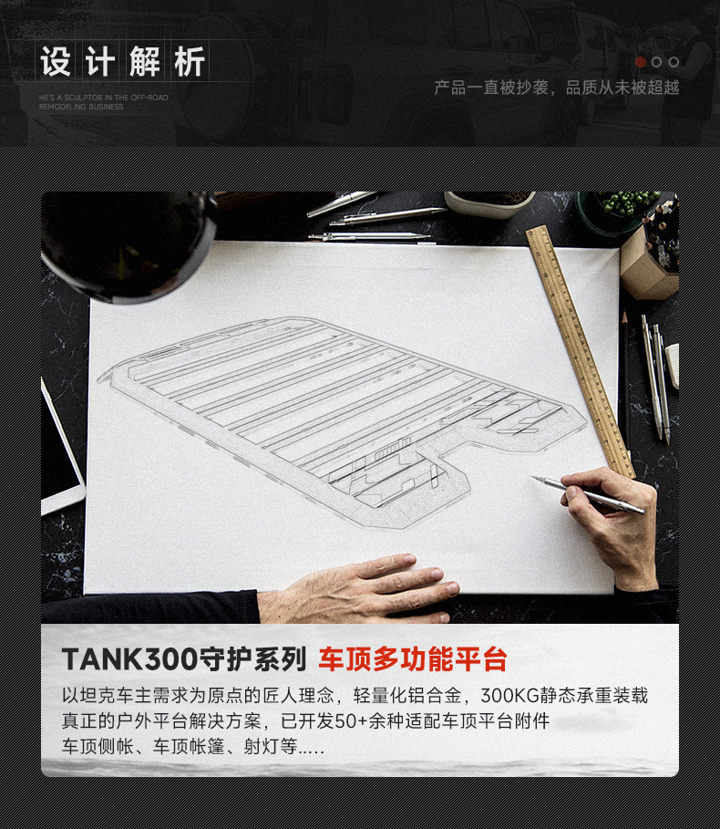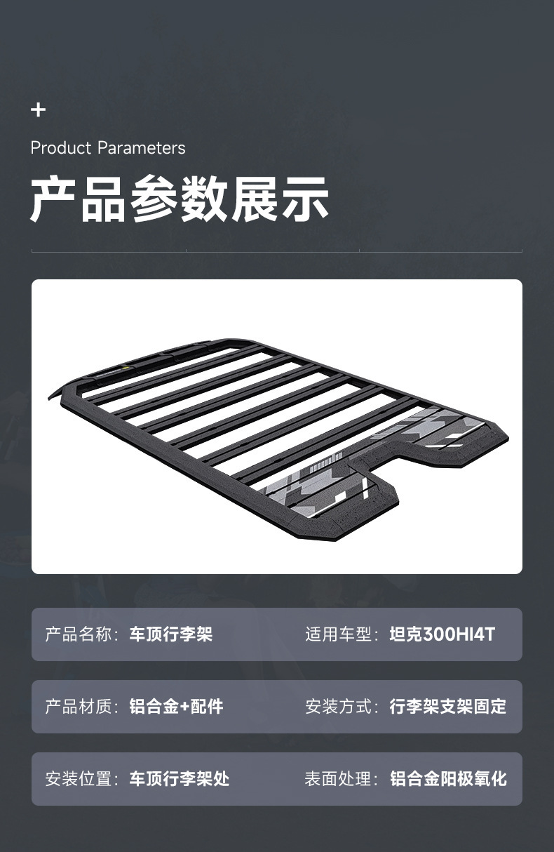 - Precision-engineered roof luggage platform designed specifically for the TANK 300 Hi4-T hybrid model for a seamless fit.